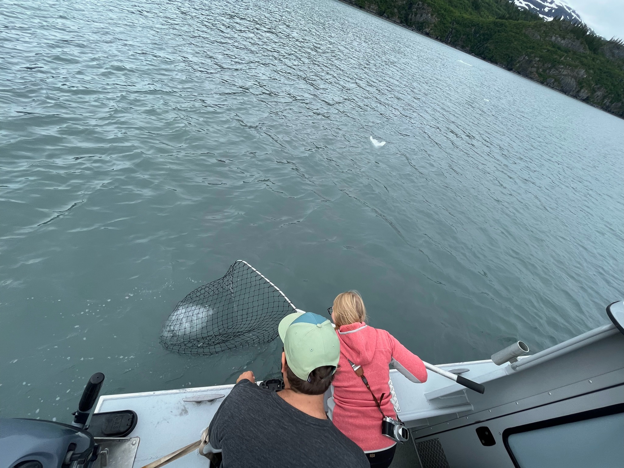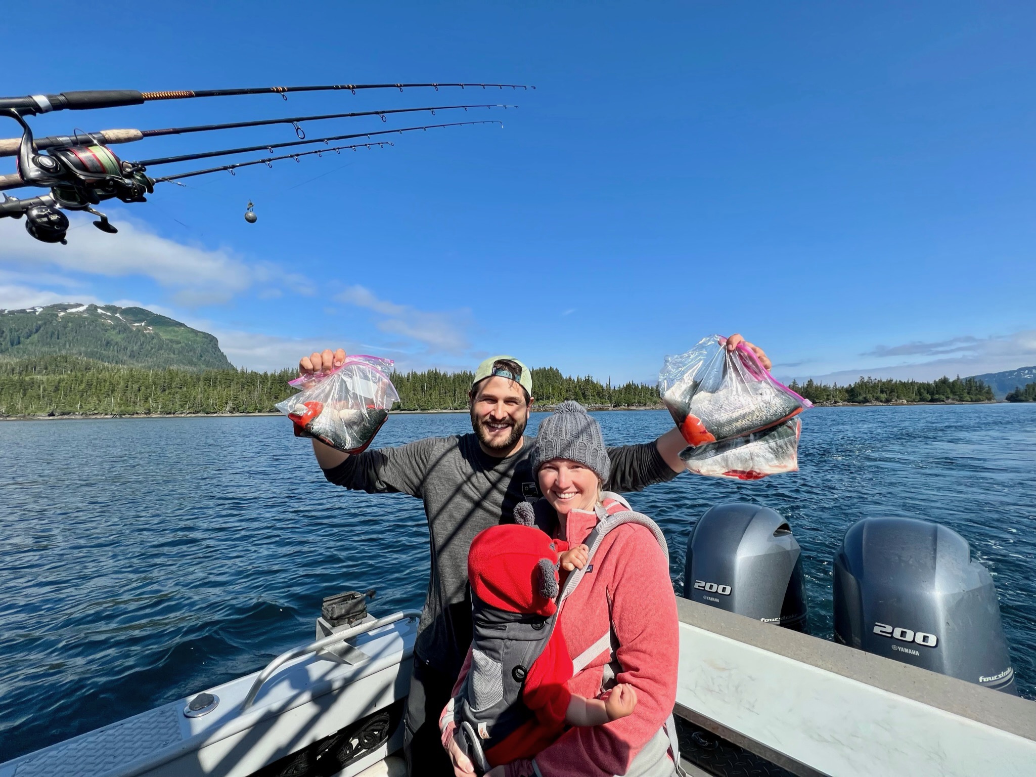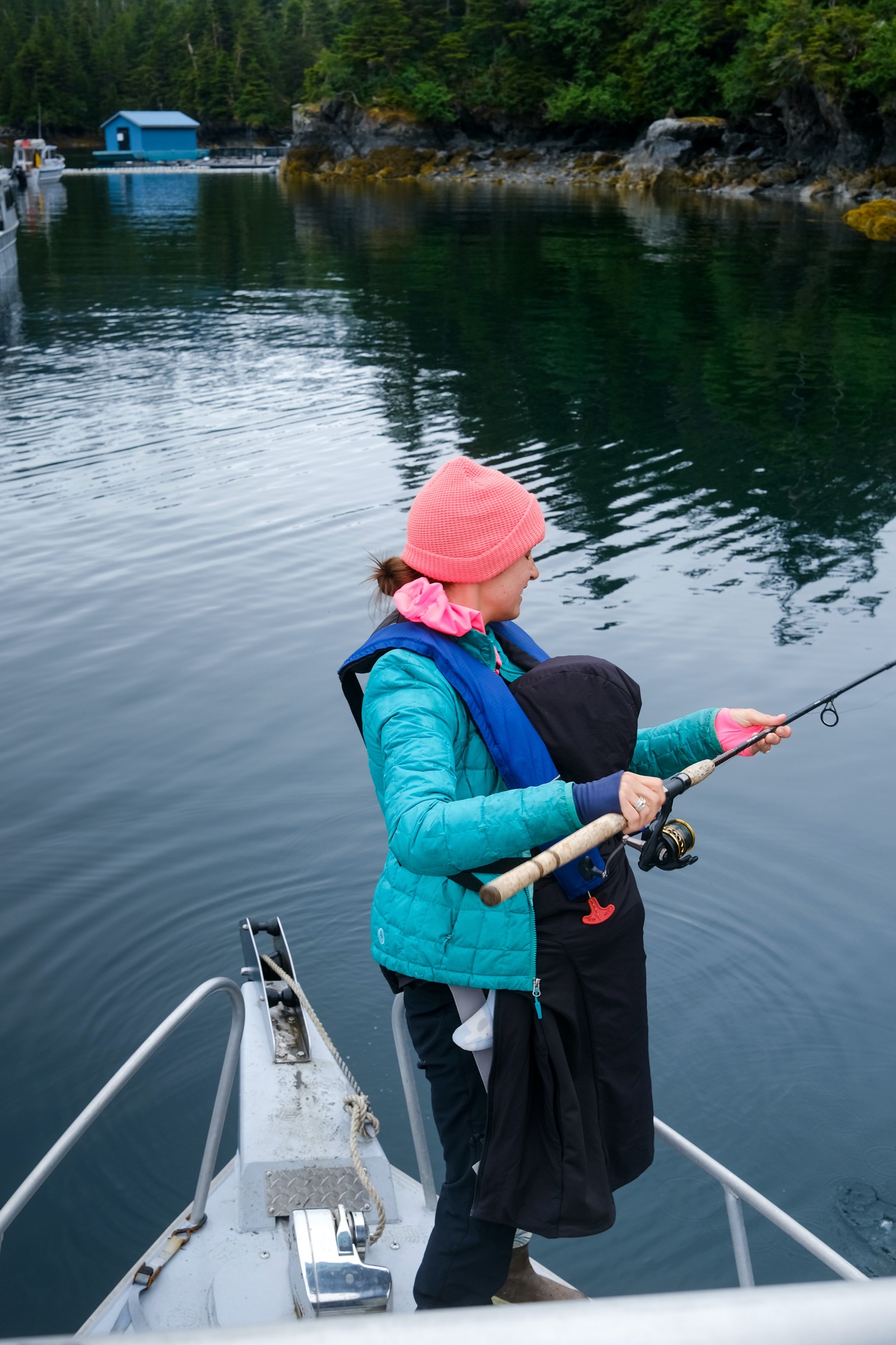 Getoppt wurde das ganze mit Lachsfischen am nächsten Tag. Alle Umweltaktivisten mal kurz wieder ausatmen. Alaska hat den nachhaltigsten Bestand an Wildlachsen weltweit (wahrscheinlich den einzigen). Die Anzahl der Fische, die privat pro Tag gefangen werden dürfen richtet sie nach der Größe des Bestands (für uns sechs pro Person). Und es sind Behörden vor Ort, die die Angellizenzen kontrollieren.