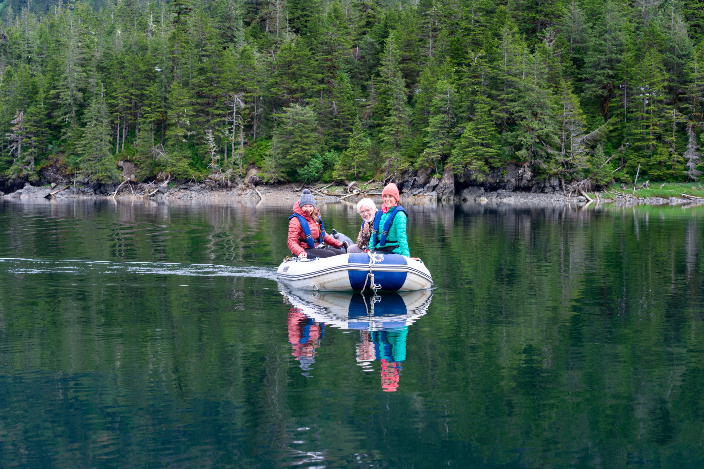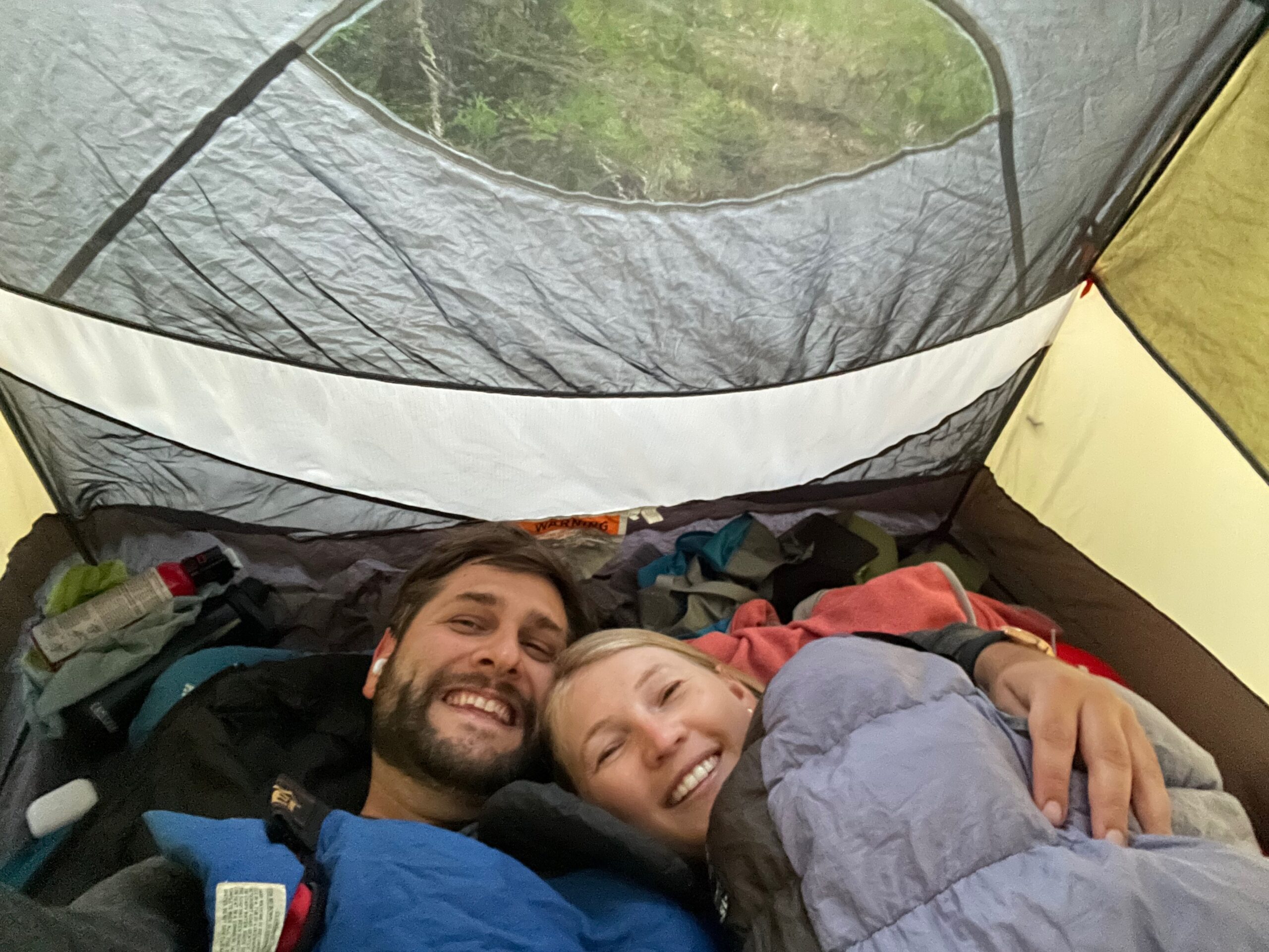 Ein Abenteuer muss ich dann aber doch erwähnen. Ich war campen. Also ja, wir waren alle zusammen campen. Das Besondere hier ist aber, dass ich mich habe überreden lassen eine Nacht in der Wildnis zu schlafen. Nicht dass ich viel geschlafen hätte. Aber ich war Teil des Teams. Wie ist das Zustande gekommen? Guido und ich hatten von Anfang an besprochen, dass ich nicht campen gehe. Ich mache so einiges mit, aber draußen in der Natur, ohne fließend Wasser und Sanitäranlagen, mit der Möglichkeit beim Verrichten von Geschäften von Bären überrascht zu werden. Nicht so meins. Der Plan ist eigentlich den letzten Freitag vor unserem Abflug auf dem Boot von Justin’s Vater Jack zu verbringen, ein paar Gletscher anzuschauen und die Aussicht zu genießen. Vielleicht zu fischen. Jack kann es so gar nicht nachvollziehen, dass wir nicht eine Nacht bleiben (Ihr wisst schon: Ihr seid doch nur einmal da…*seufz*). Und wenn Guido etwas nicht kann, dann ist es Väter zu enttäuschen. Er schaut mich an und weiß, dass wenn er etwas unbedingt will und mich anschaut wie eine junge italienische Dame mit Belladonna in den Augen, ich nicht nein sagen kann.