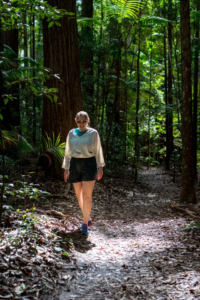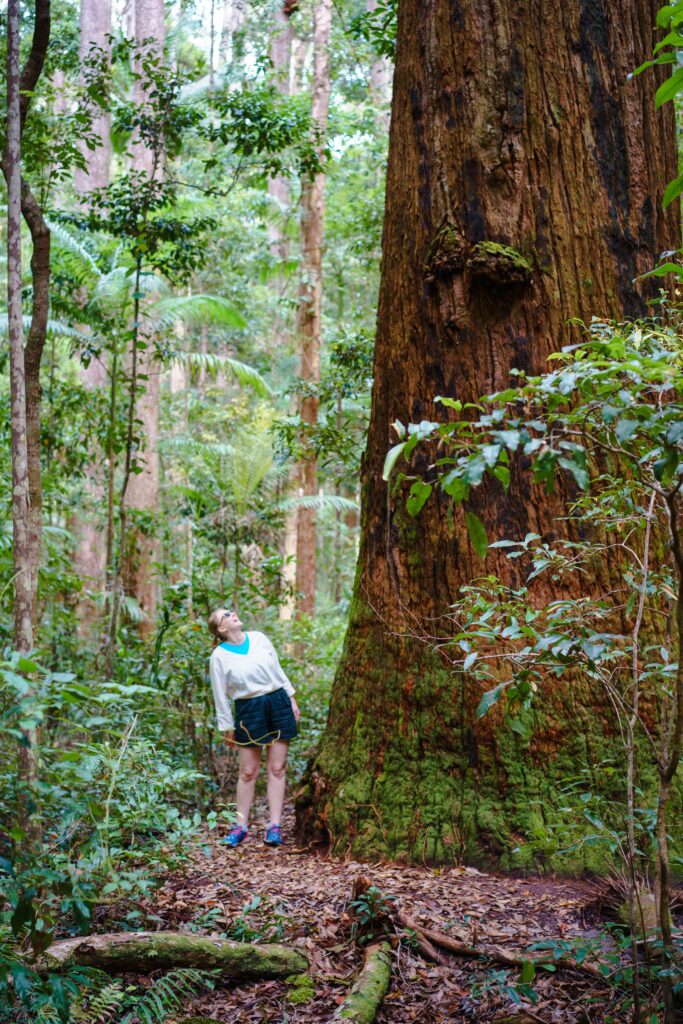 Our first stop on the island was meant to be a short walk through the forest. To see really big trees. Here is one with me for scale (about 1.60 m).