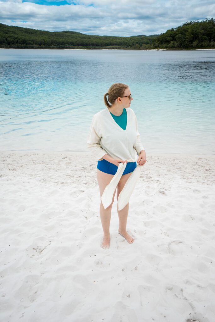 We continue to Lake Mckenzie. For the two people who might be interested: it is a lake on a dune. It is fed only by rainwater and has really fine sand that you can use to clean jewellery. In general, the lakes on Fraser Island are among the cleanest waters in the world. Guido first treated himself to a peeling. Considering that the entire island is a national park with sensitive nature, I didn’t expect to find tourists barbecuing and bathing at the lake as if it were a normal beach in Spain or Greece. Strange and actually I don’t approve of it (ohh the self-righteousness, I know). In any case, it’s a dream and a great experience.