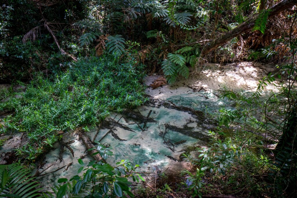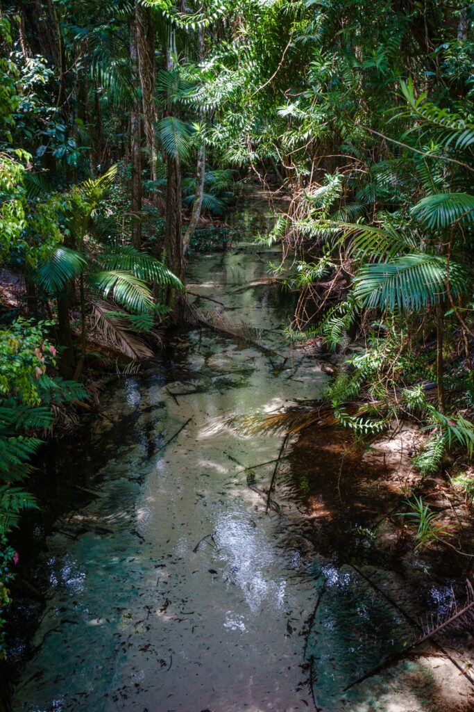 Danach ging es in nassen Badeklamotten ins Auto. Freude, schöner Götterfunken. Nächster Halt Wanggoolba Creek. Dieser Bach macht keine Geräusche. Wo keine Steine, da kein Plätschern. Und das Wasser ist so klar, dass man denkt, das Bachbett enthält kein Wasser.