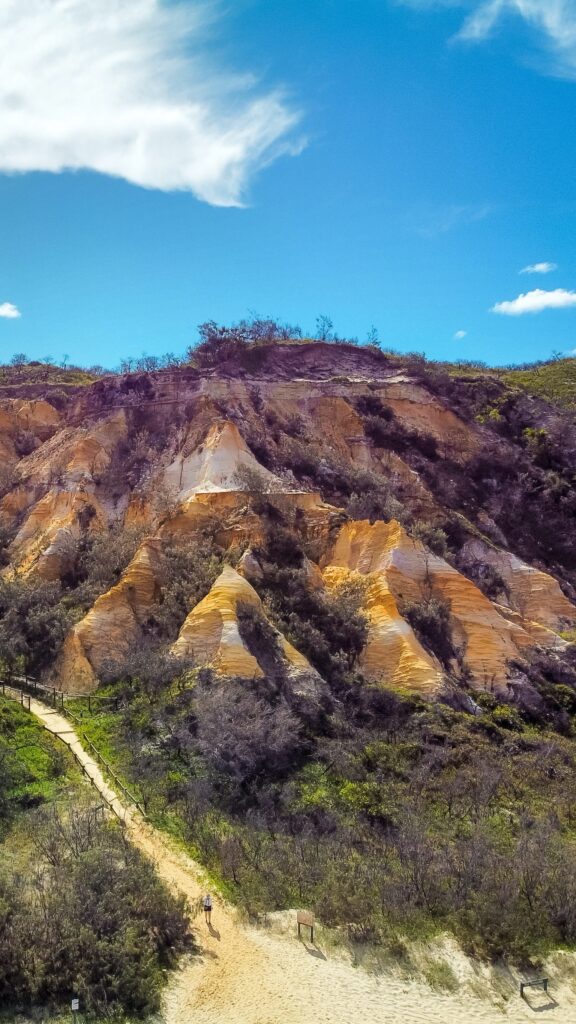 On the beach you can see the colourful rock formation “The Pinnacles”, a 20th century shipwreck (run aground during a cyclone storm) and Eli Creek (the largest creek on the island).