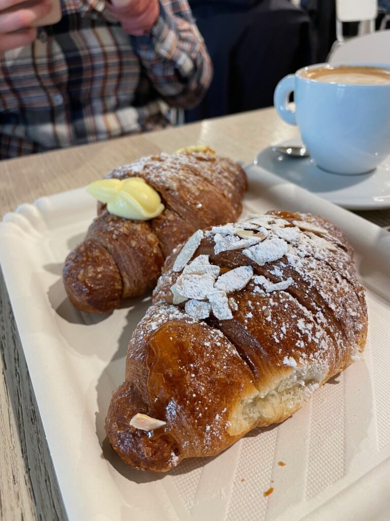 I completely slept through the flight from Berlin to Milan and only woke up when the plane touched down “gently”. Also a way of being woken up. We had a four-hour layover and it was sorely needed. No stay in Italy without cornetti and cappuccino.