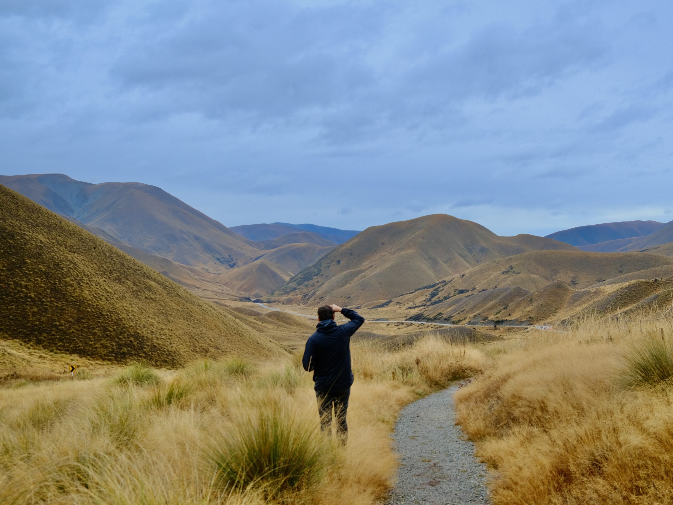 Aber, wir wollen auch weiter. In meinem Kopf ist der Plan gereift zuerst nach Norden zu fahren und gegen den Uhrzeigersinn. Es kommt wie es kommen soll, es geht nach Süden in die Berge. Das Beste aus dem Wetter machen und die letzten Herbsttage mitnehmen. Erstes Ziel Lake Tekapo und der Mount John Summit. Hier gibt es auch ein Observatorium. Für alle Sternegucker ist Neuseeland sowieso zu empfehlen. Während wir auf die goldene Stunde warten, muss ich mir den neusten Sommerhit (Ich hab gehupt von Brummi Bryan) anhören. Ich glaube wir haben das Lied etwa 6 Mal gehört, um uns warm zu halten. Das Warten hat sich gelohnt und wir wurden nicht enttäuscht.