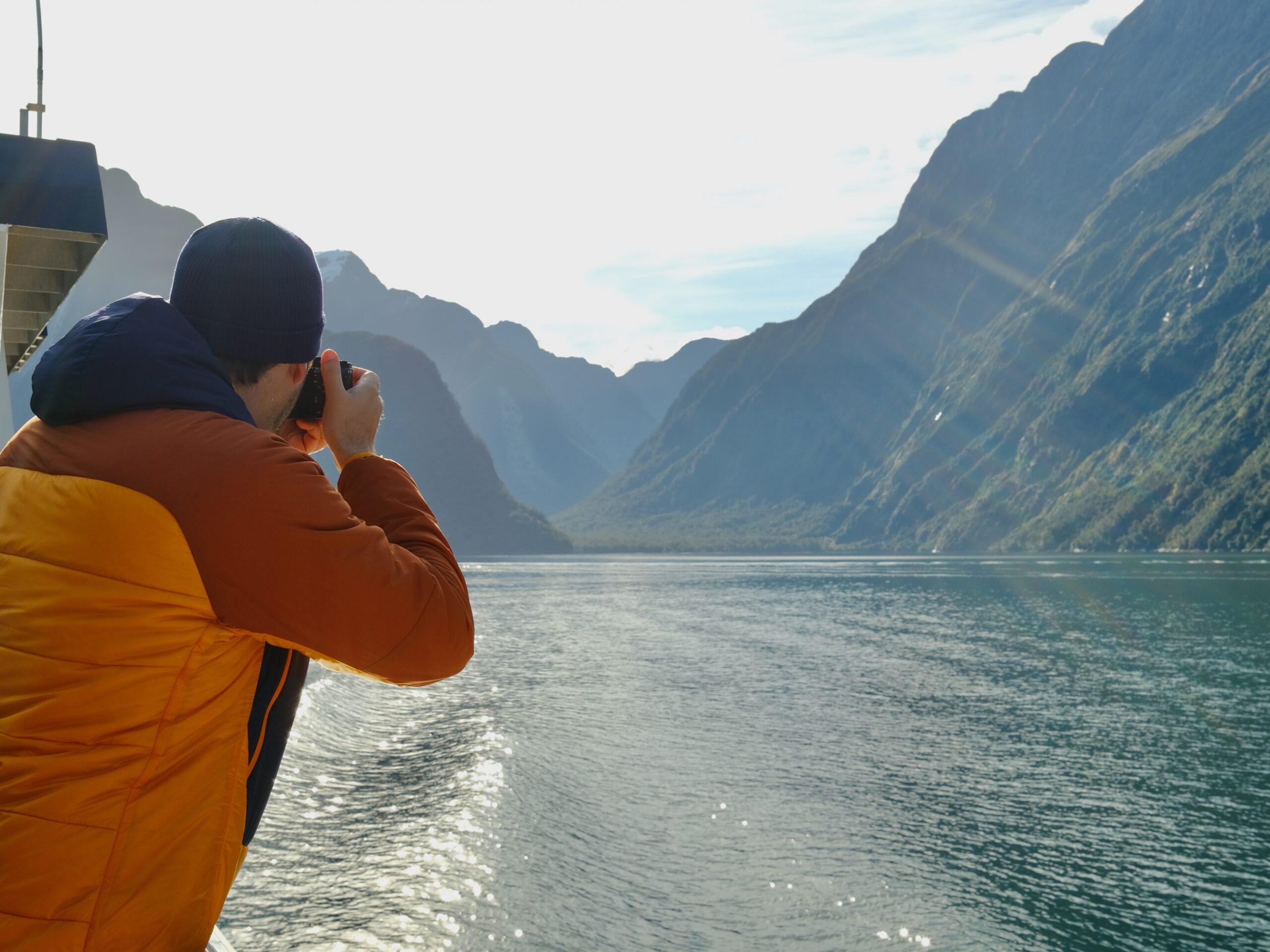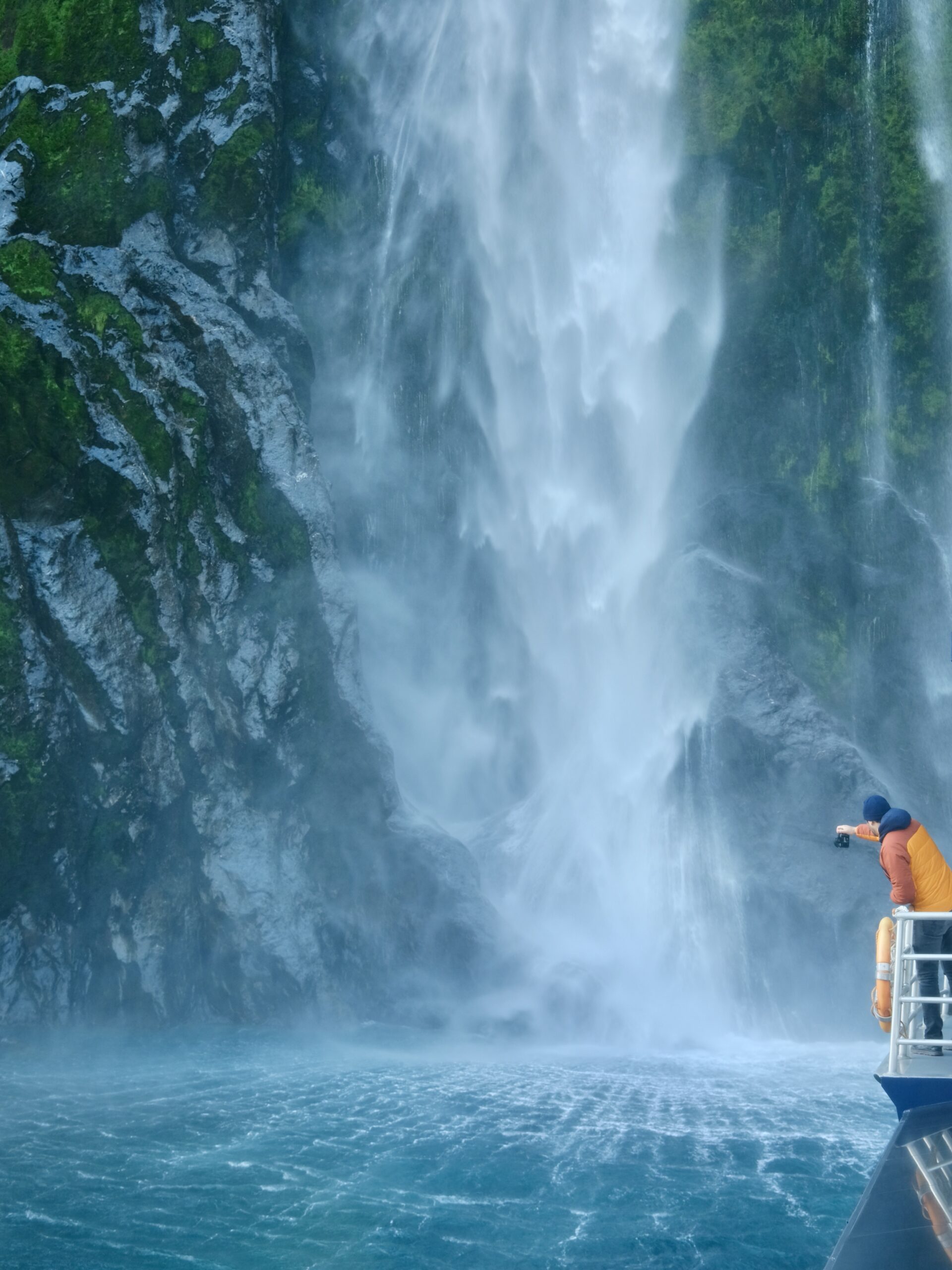 Es geht in Herrgottesfrühe nach Milford Sound. Wir haben auch genug Zeitpuffer eingeplant, obwohl wir nicht wussten, dass unterwegs überall Straßenausbesserungsarbeiten stattfinden. Die Fahrt endet im Digital Detox. Man hat wirklich keinen Empfang. Braucht man auch nicht. Wir können unsere Bootstour auch ohne genießen. Hier haben wir auch wirklich Glück mit dem Wetter. Ich hätte den ganzen Tag auf dem Boot verbringen können. Guido ist bis heute nicht darüber hinweggekommen, dass die Berge um den Fjord herum bis zu 1600 m aufragen.