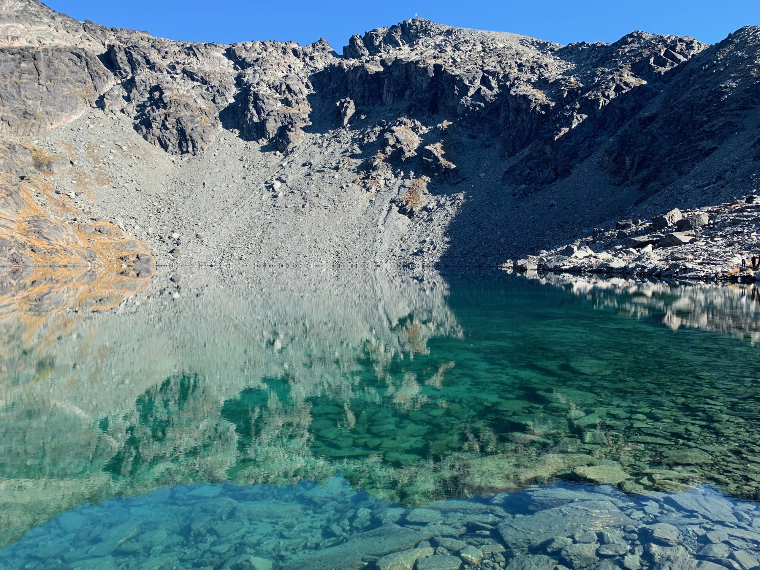 So it is with our little hike to Lake Alta. We have all the time in the world to enjoy the lake and the reflections here too. I read that there are guided tours to the lake because many tourists can’t find the hiking route. Understanding from my side, it’s a bit circuitous past the ski lift. I probably wouldn’t have found it without Guido.