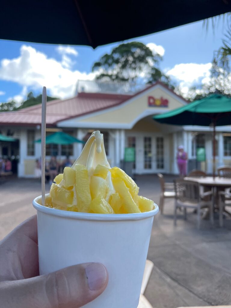 After a Dole Whip (pineapple soft ice cream made with fresh pineapple from the in-house pineapple plantation), we head back to Honolulu.