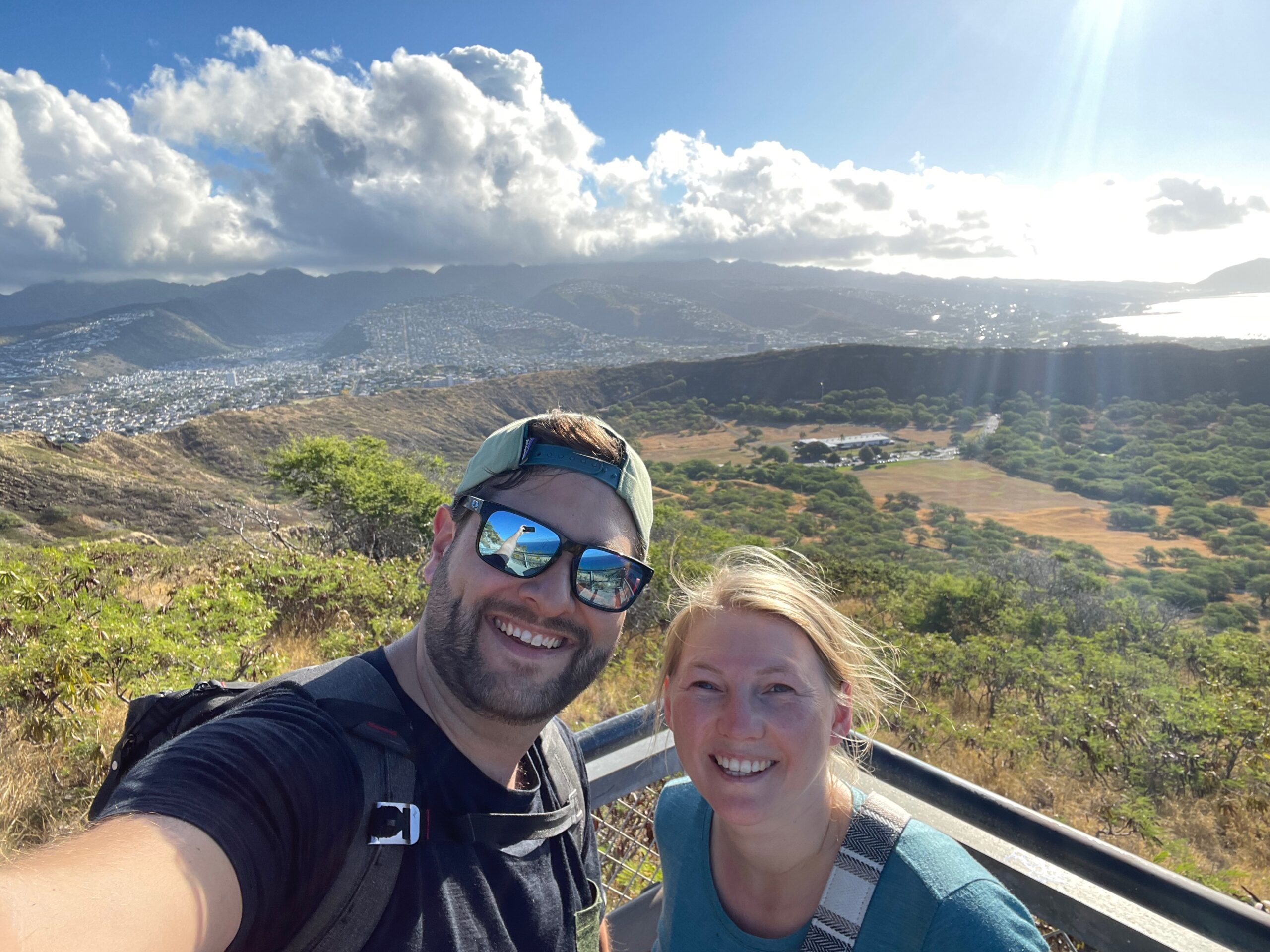 Ob wir fast alles auf der Insel gemacht haben was man so machen kann? Ich würde sagen ja. Wir sind den Diamond Head hochgelaufen. Das ist der hauseigene Vulkan, den man besteigen kann. Es ist eine kurze 30-minütige Wanderung zum Gipfel. Man muss aber vorher reservieren, da die Anzahl der Menschen, die gleichzeitig hochdürfen begrenzt ist. Es ist ganz schön was los. Wir haben unser Ticket zwischen 7 und 8 Uhr morgens. Wandern bei 30°C wird nicht meine Lieblingsaktivität im Leben.
