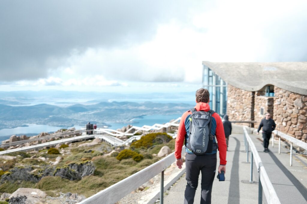 Tasmania’s capital Hobart has a local mountain, Mount Wellington (yes, like the dish). 1271m high. Most sensible people drive up, enjoy the view, drive back down and make a day of it. Not us. Of course we don’t.
