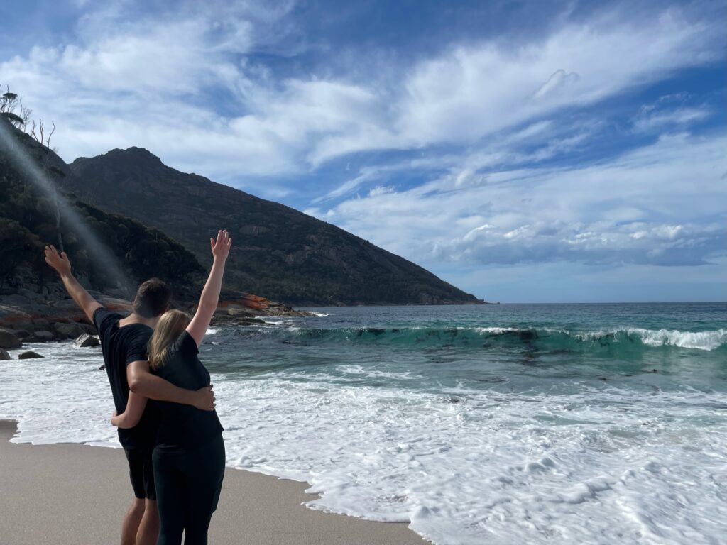 Mehr Höhenmeter haben wir an der Wineglass Bay gemacht. Hier haben wir uns auch unzählige Mückenstiche abgeholt. Wer Lust auf Tasmanien bekommen hat, unbedingt Mückenspray einpacken. Selbst jetzt, zwei Wochen später, sind die gut sichtbar. Durch die Kleidung durch haben die Viecher durchgestochen.